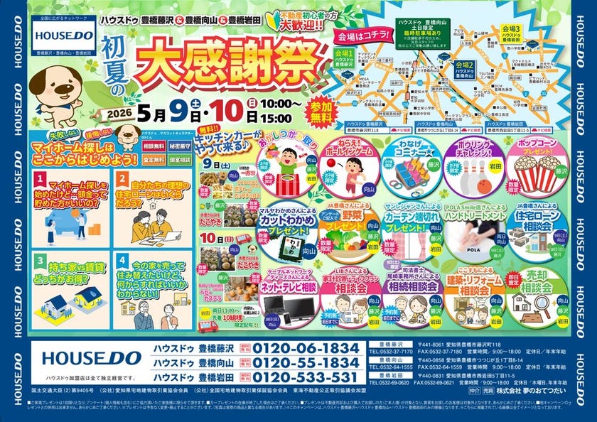 2026年5月9日(土)10日(日)はハウスドゥ豊橋3店舗で